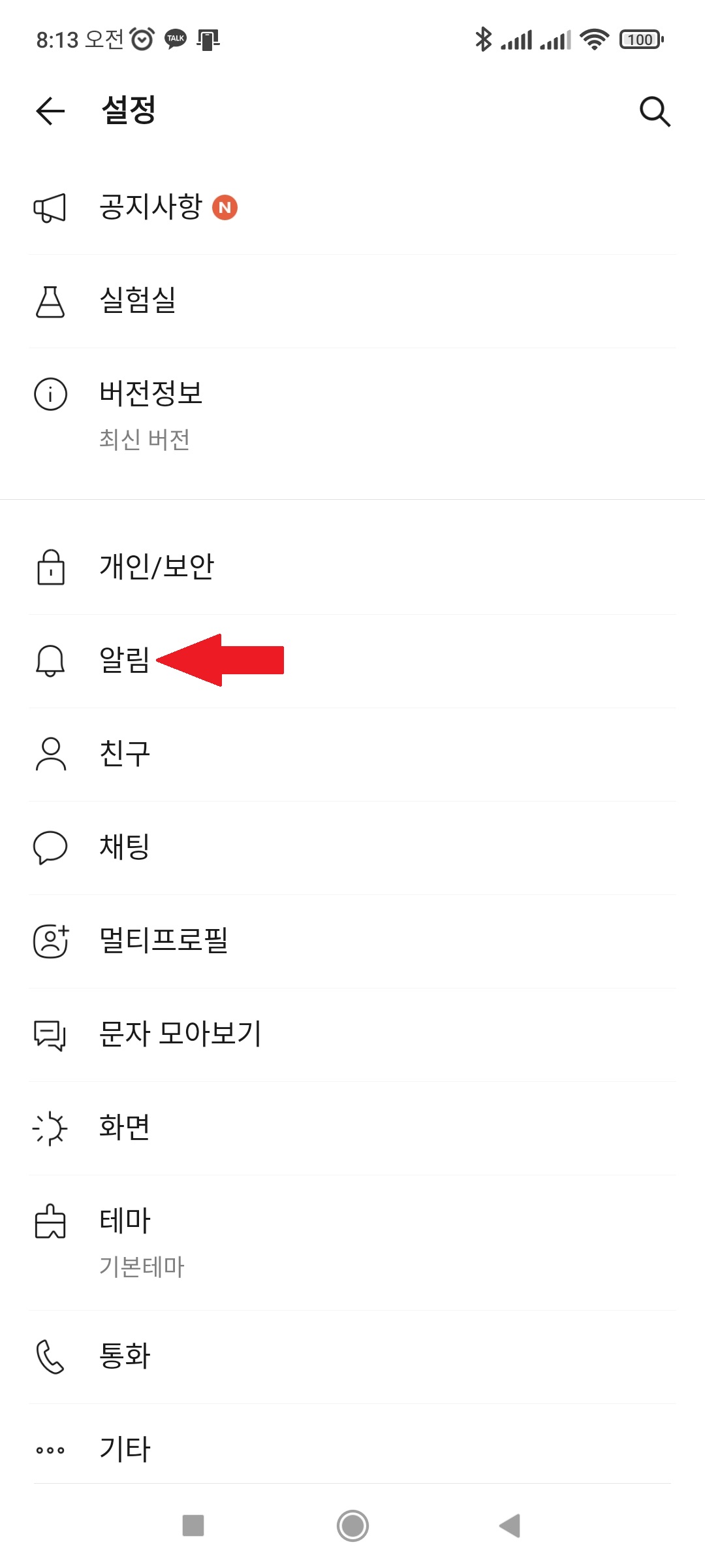 그다음에는 아래와 같이 알림 설정 메뉴로 들어갑니다.