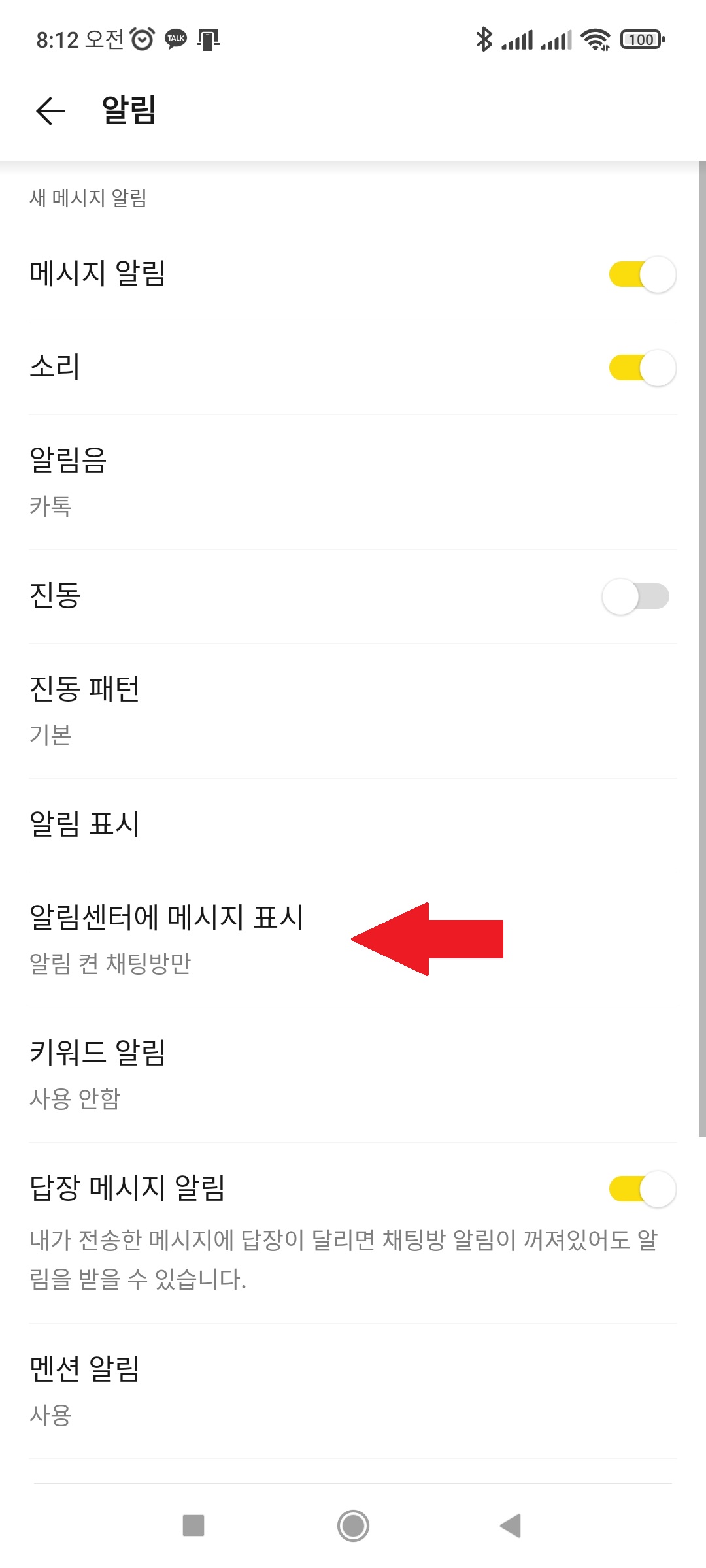 성격 급한 분들에게 요점을 먼저 말씀드리면 카카오톡 설정에서 알림 센터에 메시지 표시를 설정하면 됩니다. 그 메뉴를 못 찾으시는 분들은 아래 내용을 보시면 됩니다.